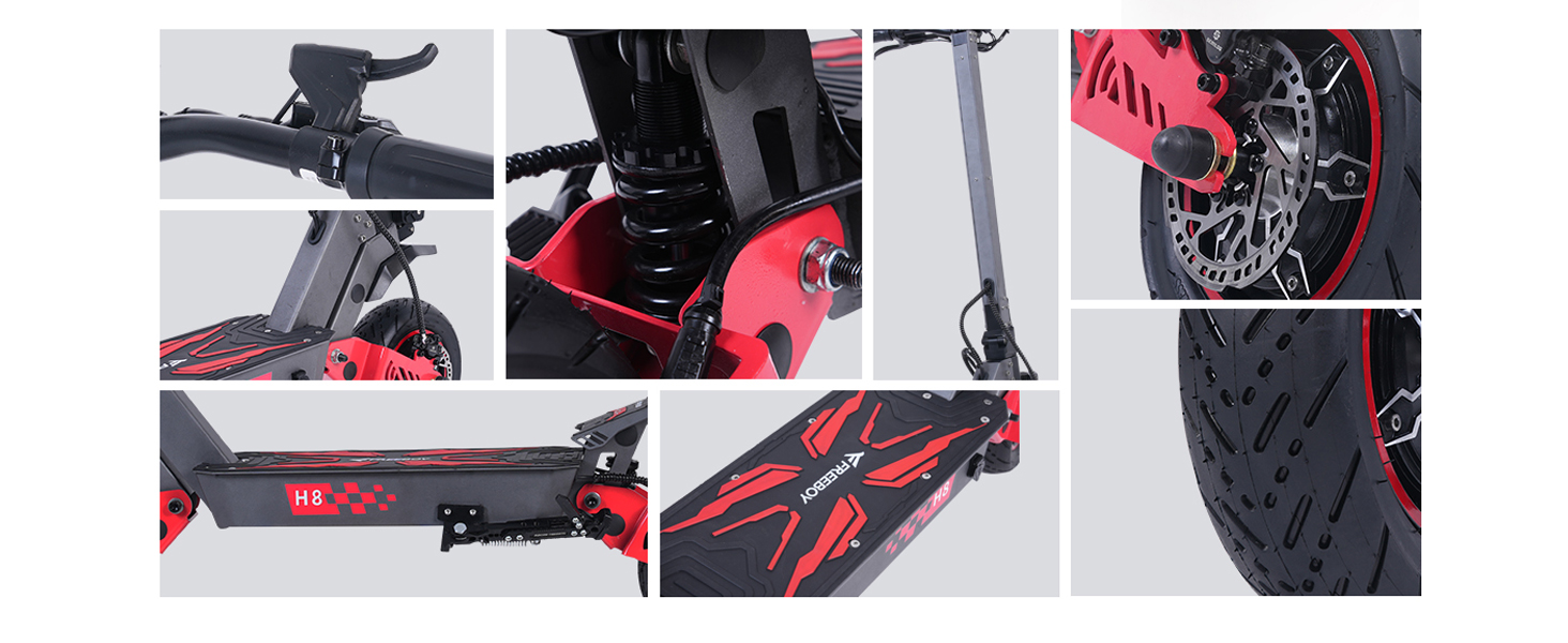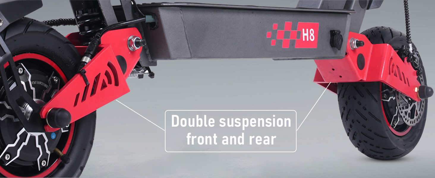 ✅Dual Suspension: Front/rear suspension absorbs shocks, ensuring a smooth ride on rough ground.