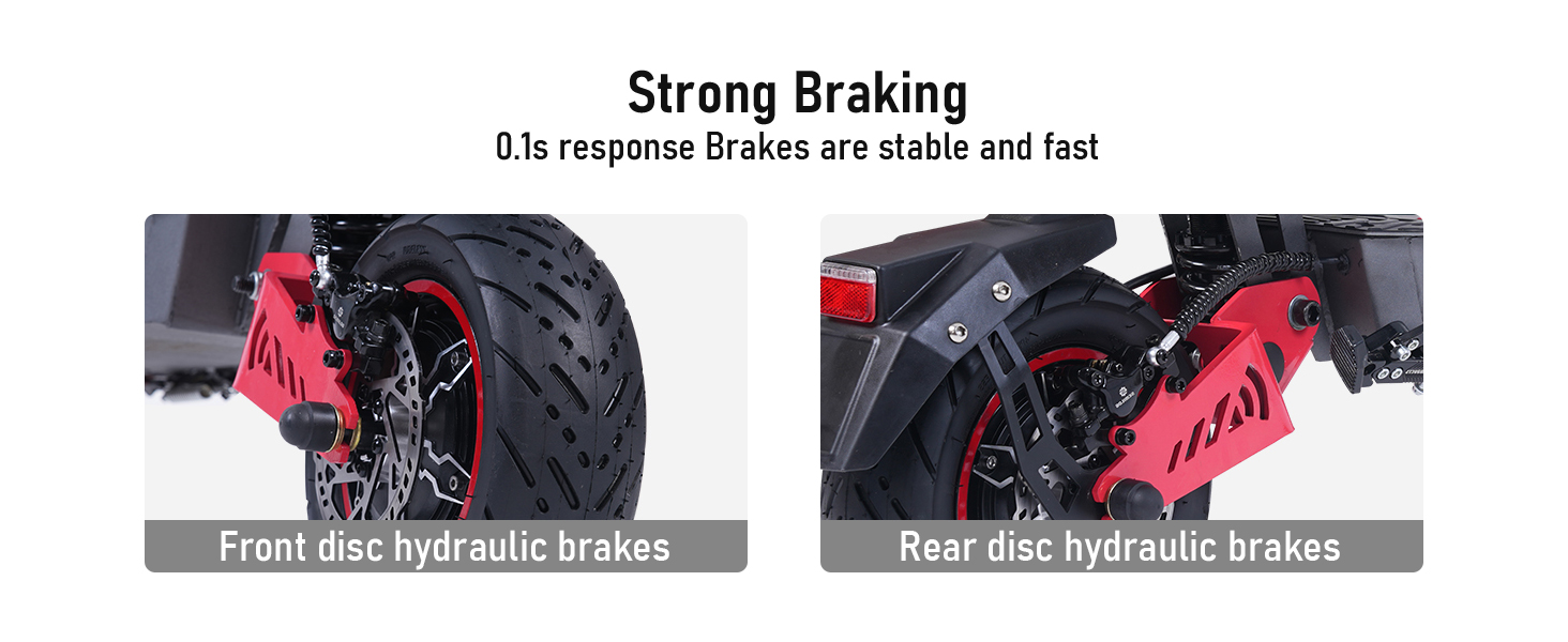 ✅Dual Hydraulic Brakes: Front/rear brakes provide precise stops, enhancing safety on all terrains.