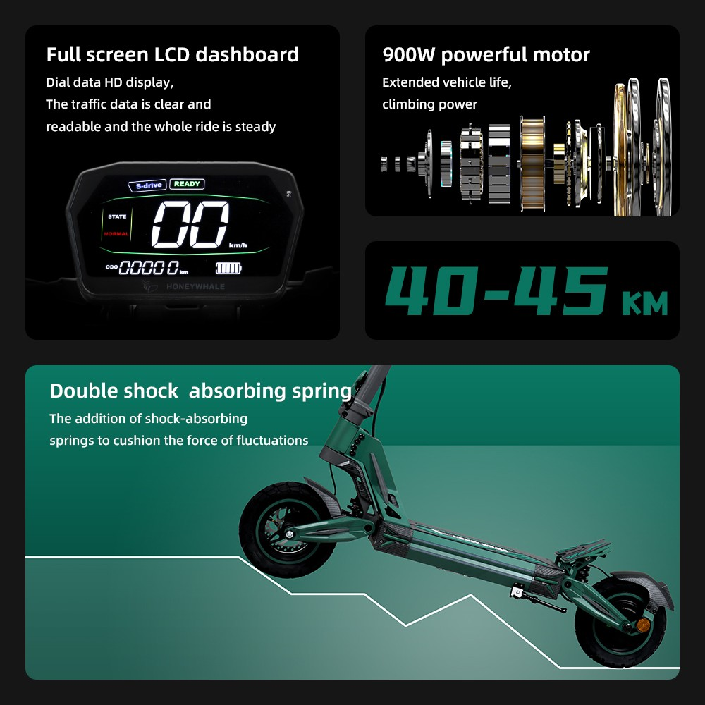 ✅10" Wheels & Dual Suspension: 10" tires with suspension absorb shocks for smooth urban/light terrain rides.