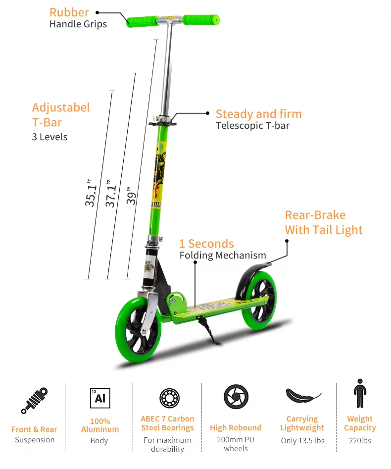 ✅Safe & Durable: Rear brake ensures reliable stops, while the lightweight aluminum frame guarantees lasting use.
